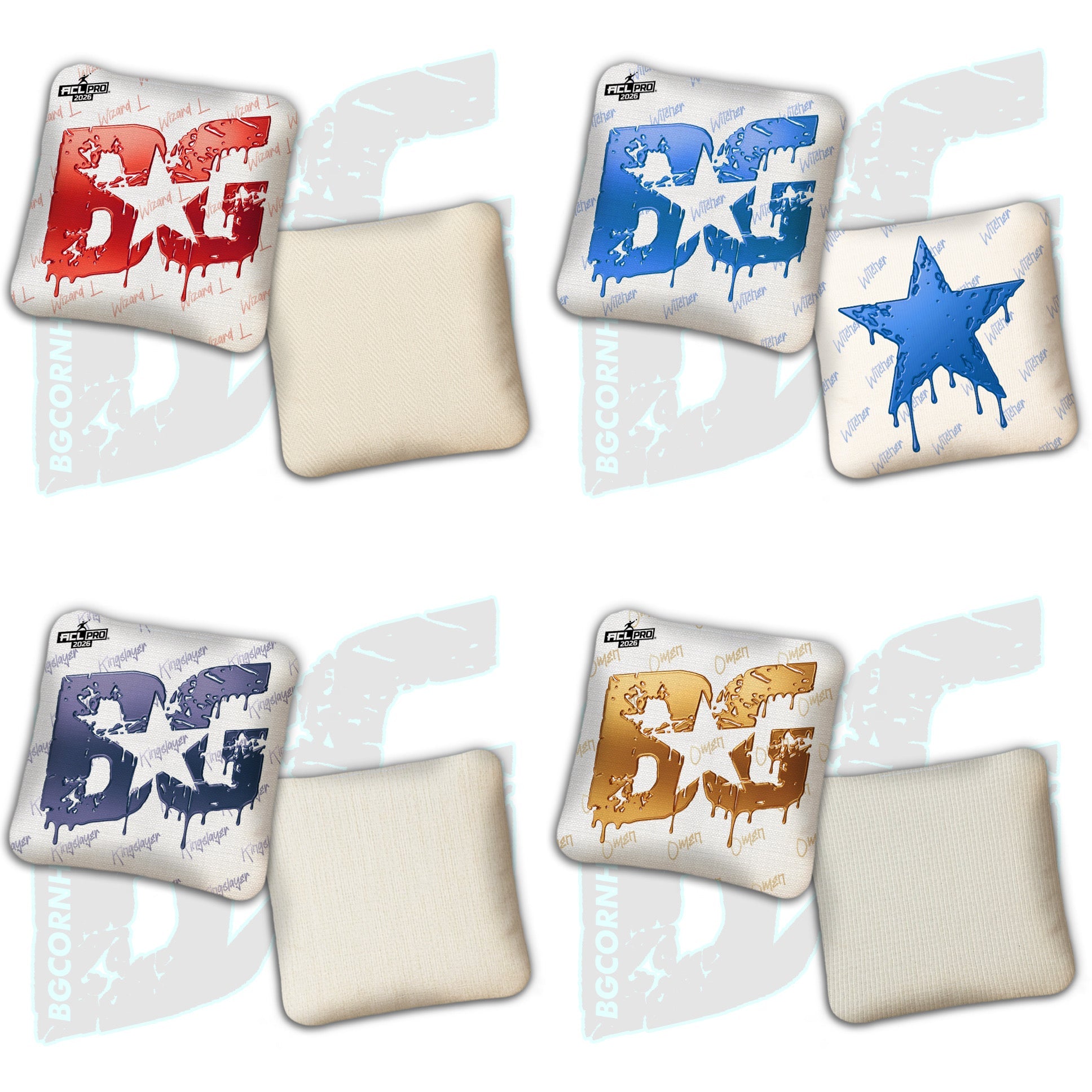 2026 BG Multiple Bag Models "White Liquid Gold" - ACL Pro Stamped Cornhole Bags - SET OF 4 BAGS