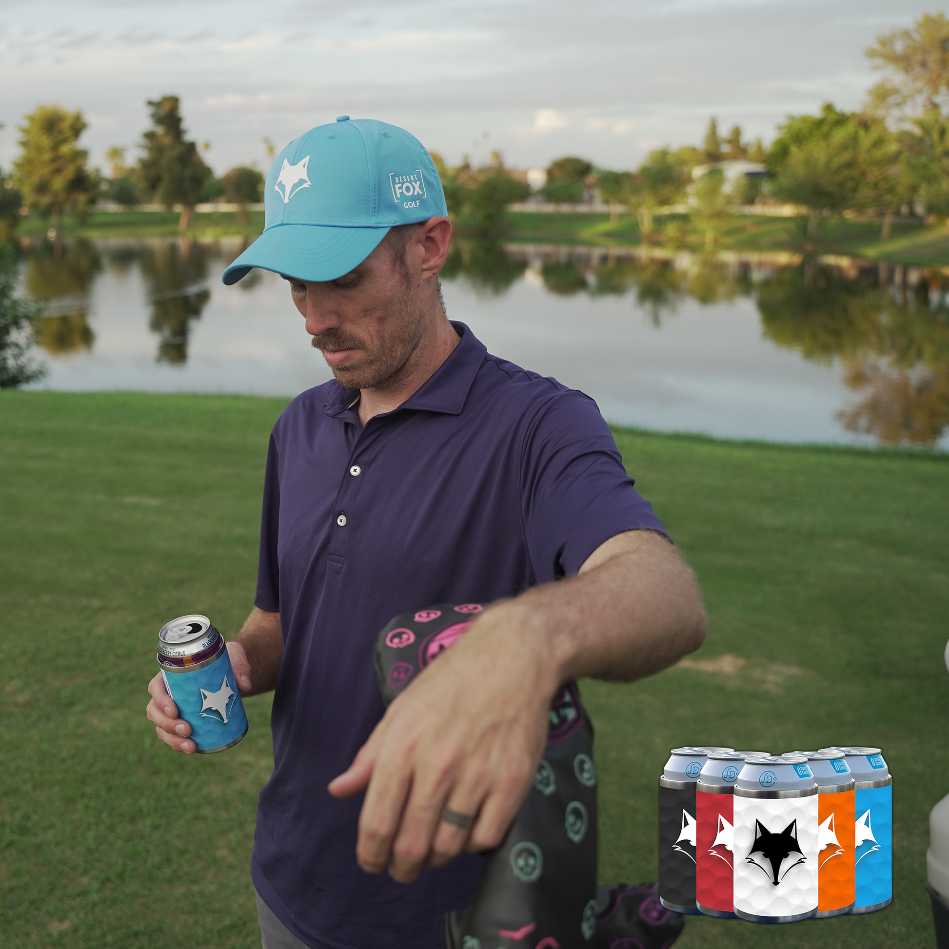 Sleek stainless steel double wall insulated can cooler. Keep your favorite canned beverage cool while on the course or anywhere else fun.