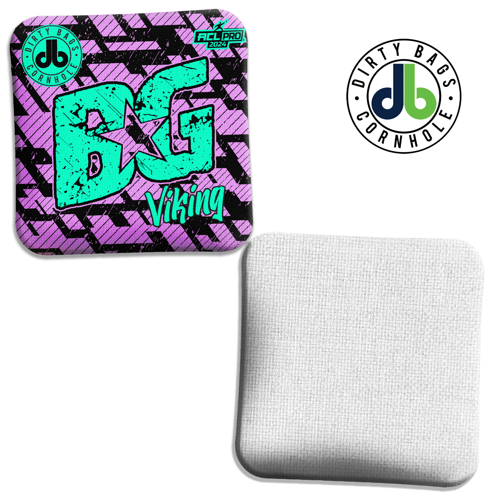 The BG Viking cornhole bag features a fast yet controllable slide side, while the slow side provides enough sticking power to throw aggressively at the board, while providing the type of material that will allow you to easily throw the flop, roll, cut shots!