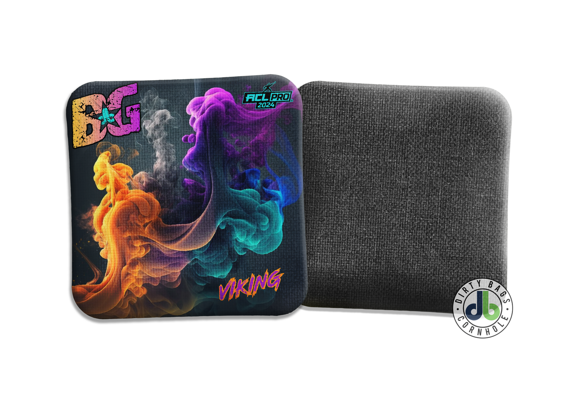 The BG Viking cornhole bag features a fast yet controllable slide side, while the slow side provides enough sticking power to throw aggressively at the board, while providing the type of material that will allow you to easily throw the flop, roll, cut shots!