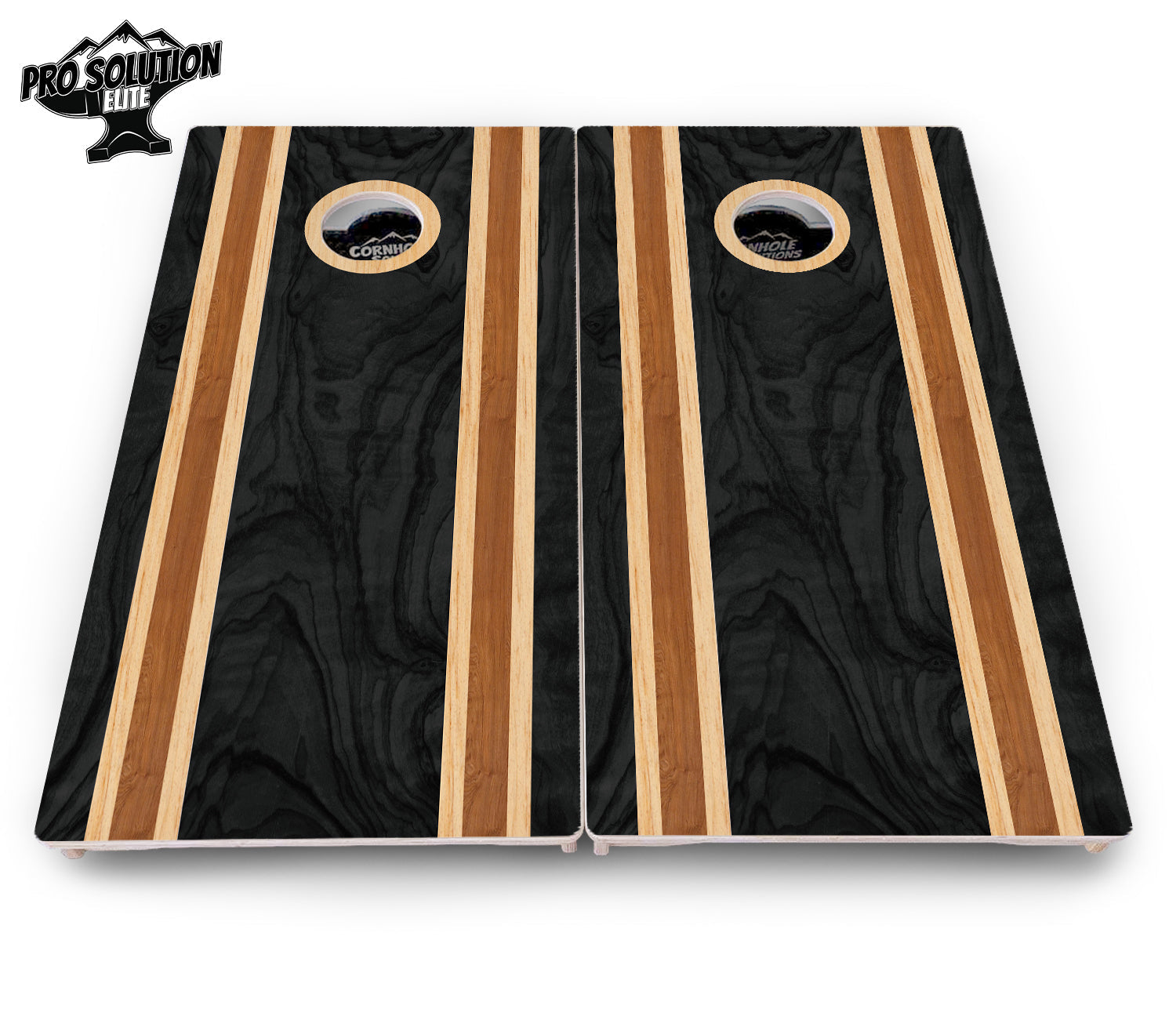 Dark Wood Stripe Cornhole Boards - Pro Solution Elite Series
