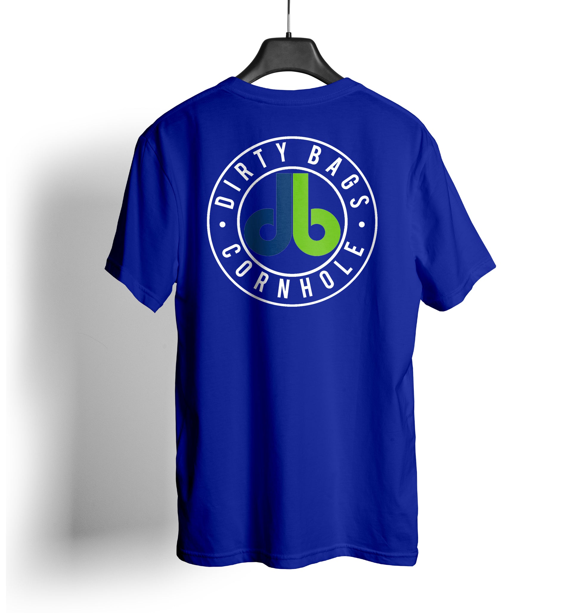 Dirty Bags Cornhole T Shirt Blue with Colored Logo