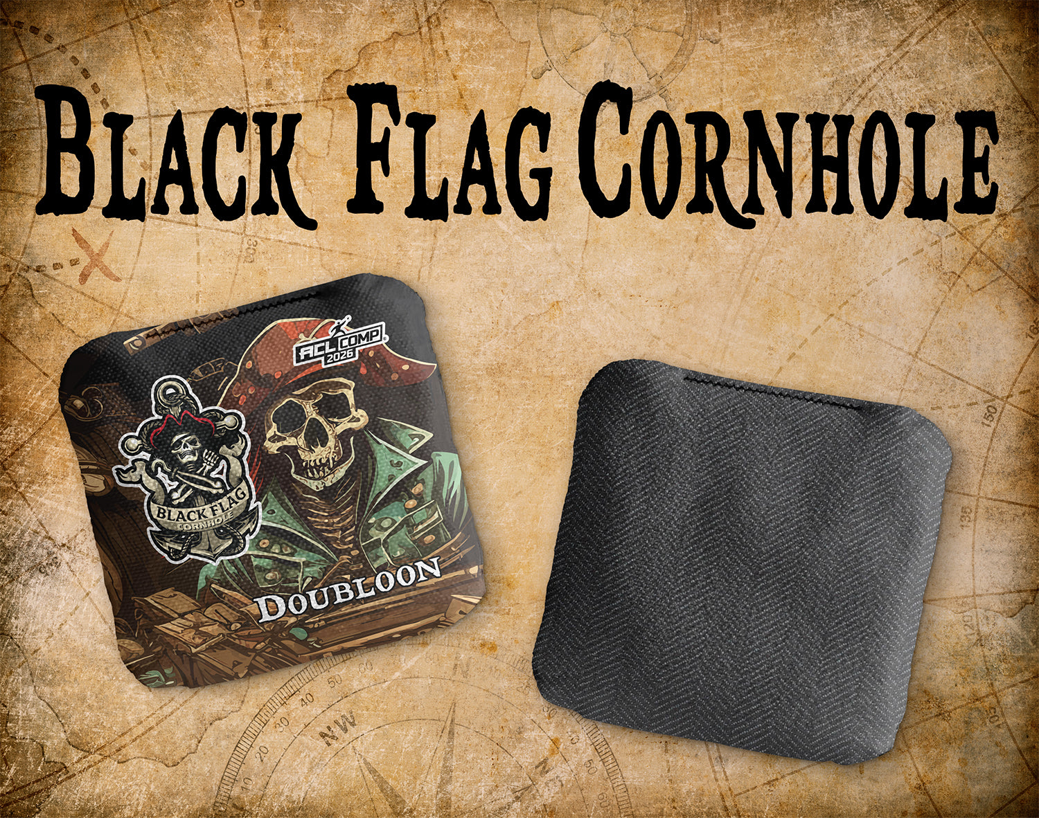 Set sail on a cornhole adventure with the Black Flag Cornhole Doubloon! Designed for those who crave a controlled carpet, this treasure pairs one of our fastest fabrics with a herringbone carpet, delivering a bag that’s as cunning as a pirate's trick. Whether ye be aiming to go hole for hole or showcase yer finest cornhole maneuvers, the Black Flag Cornhole Doubloon will have ye plundering victory in no time. Grab yer bags, hoist the Black Flag, and let the games begin!