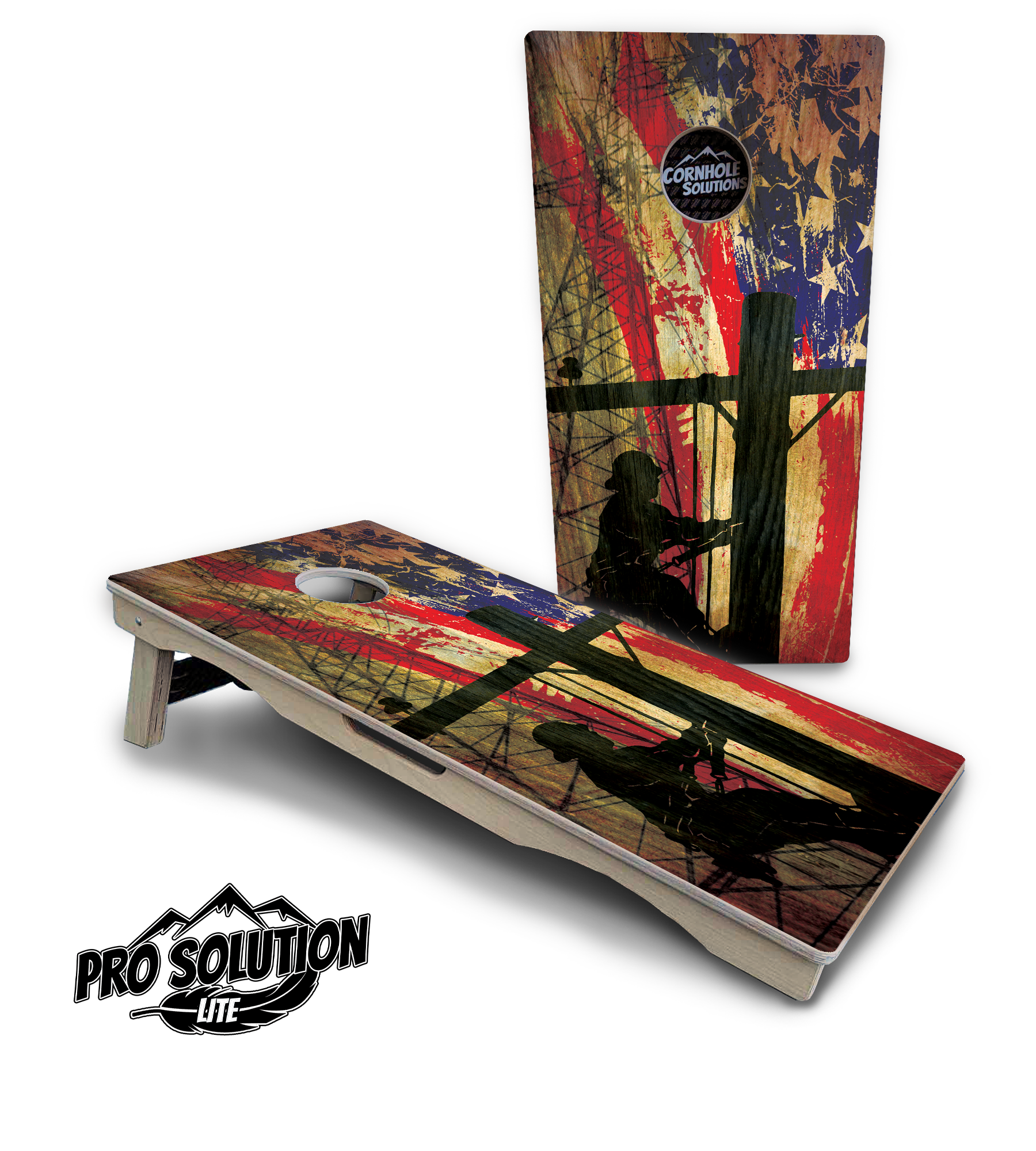 Faded Lineman Flag Cornhole Boards - Pro Solution Lite Series