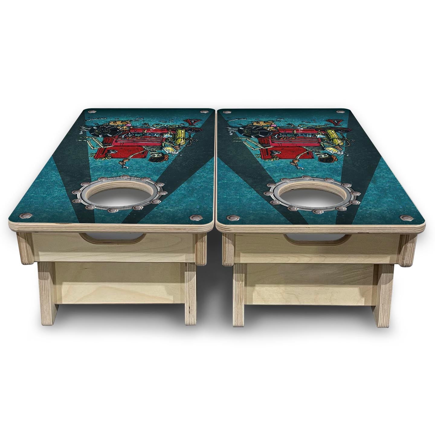 This listing includes a set of (2) high-quality mini or vac boards, made from durable 18mm (3/4″) Baltic Birch. All printed boards are finished with our professional UV clear coat system for a smooth, tournament-style playing surface — consistent, humidity-resistant, and game-ready right out of the box.