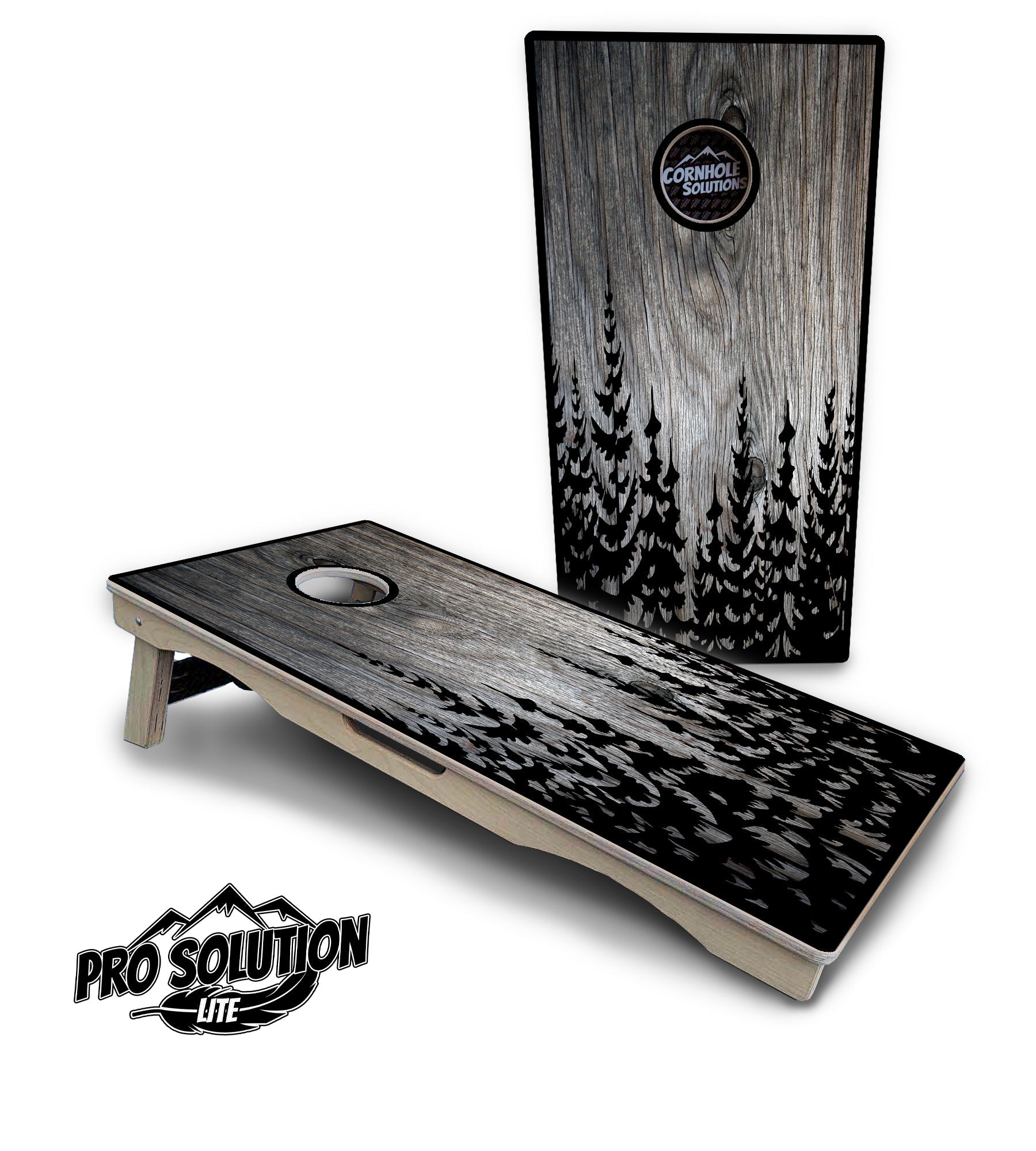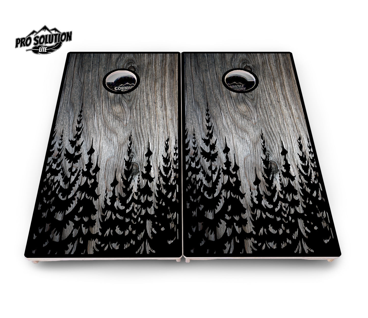 Greyscale Pine Trees Cornhole Boards - Pro Solution Lite Series