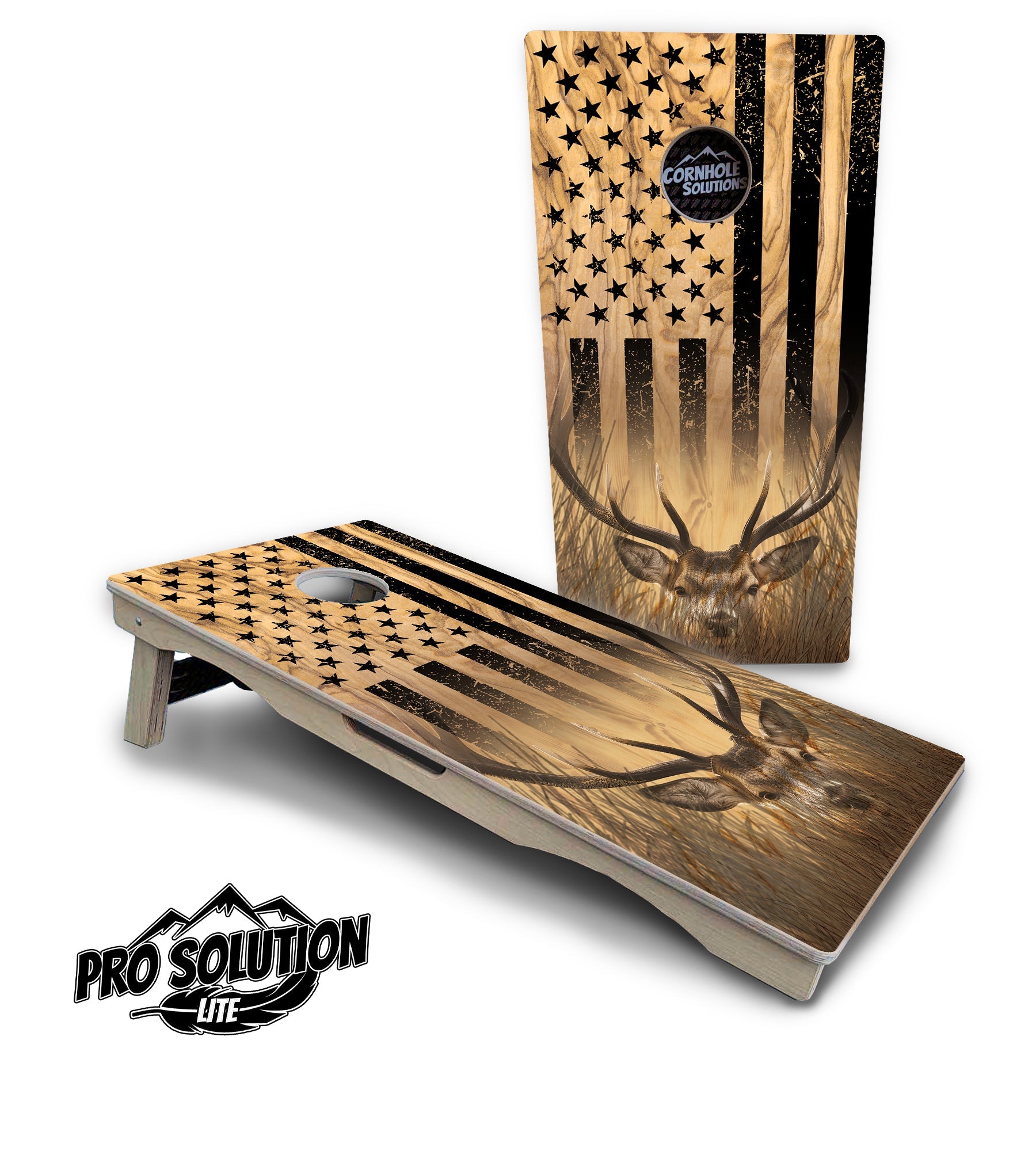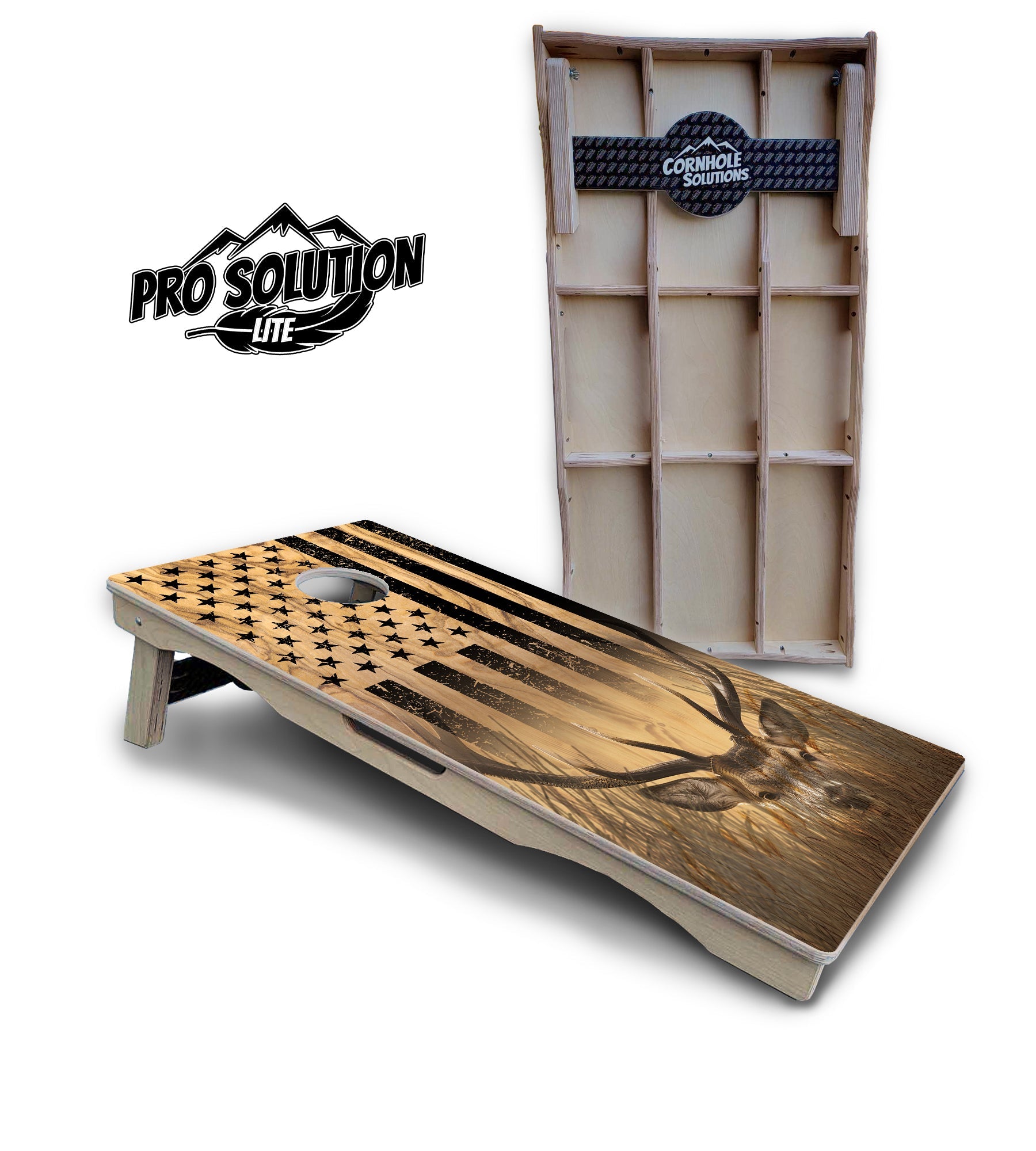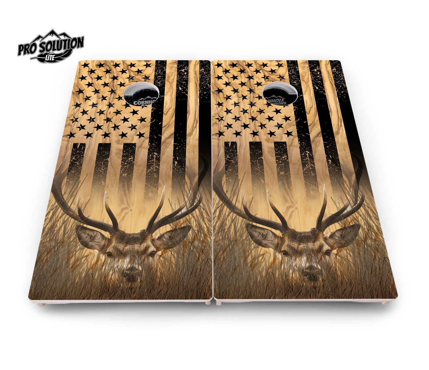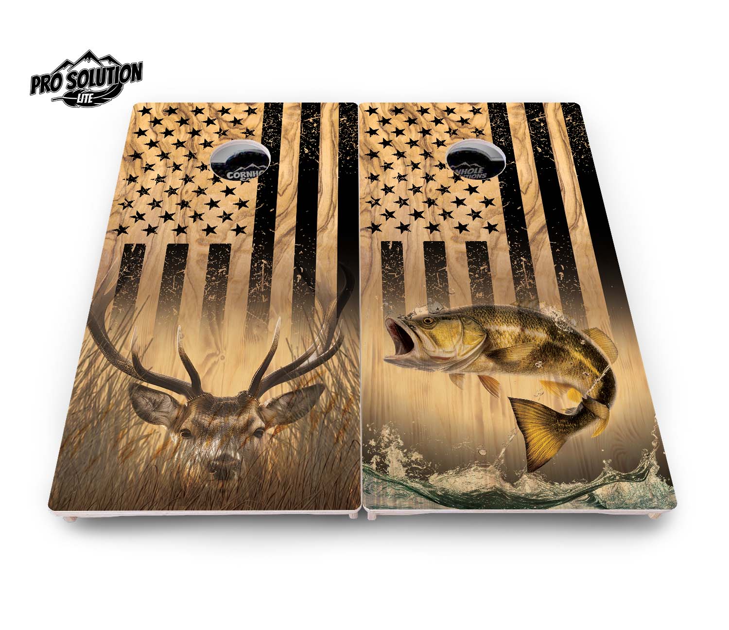 Light Wood Deer & Fish Flag Cornhole Boards - Pro Solution Lite Series