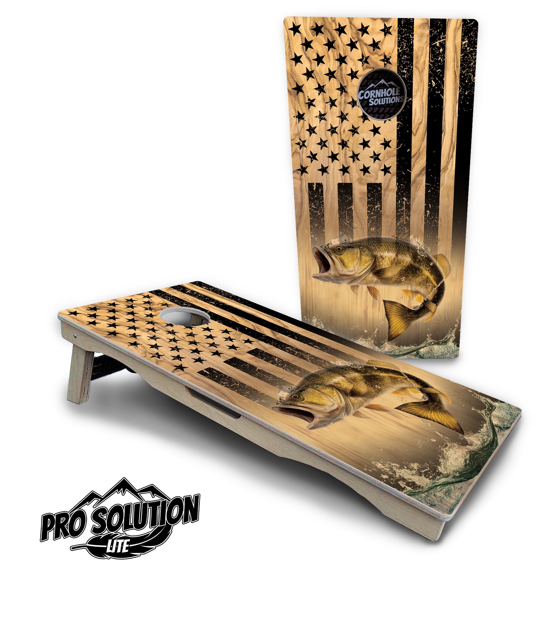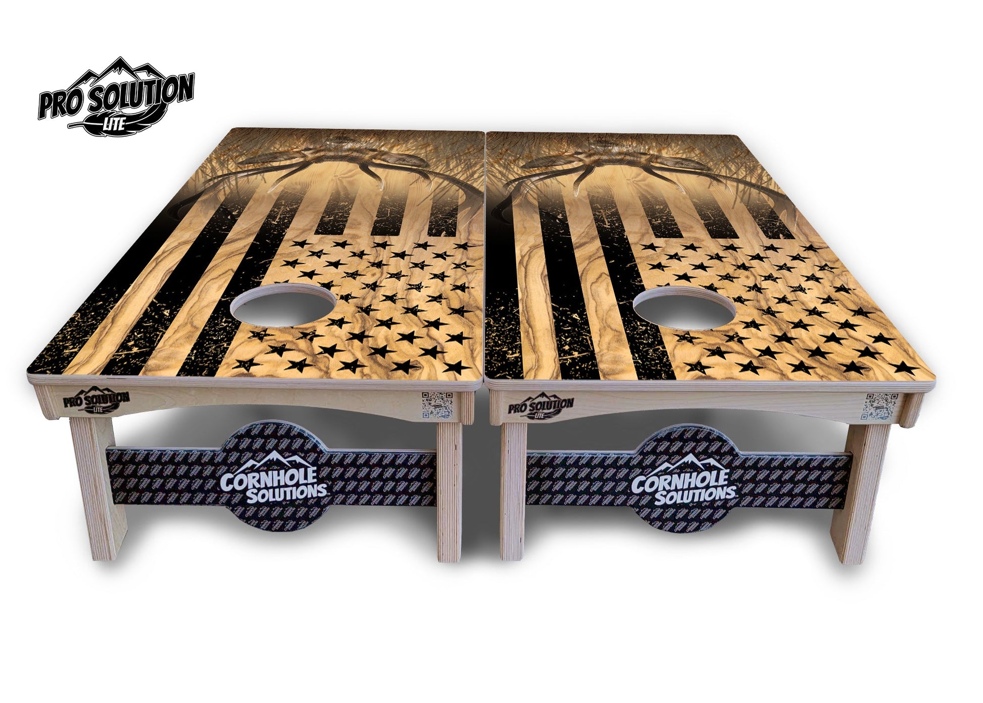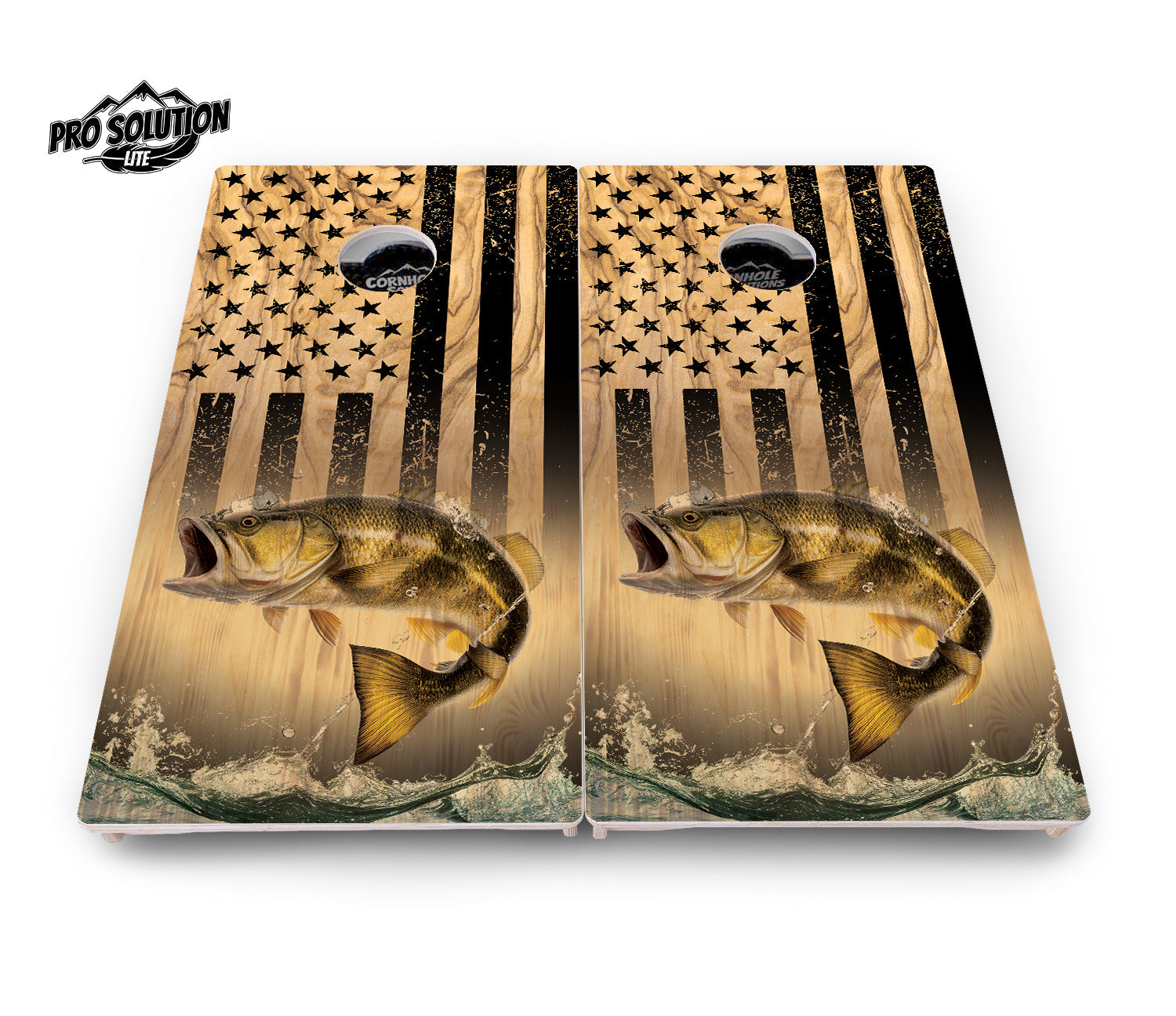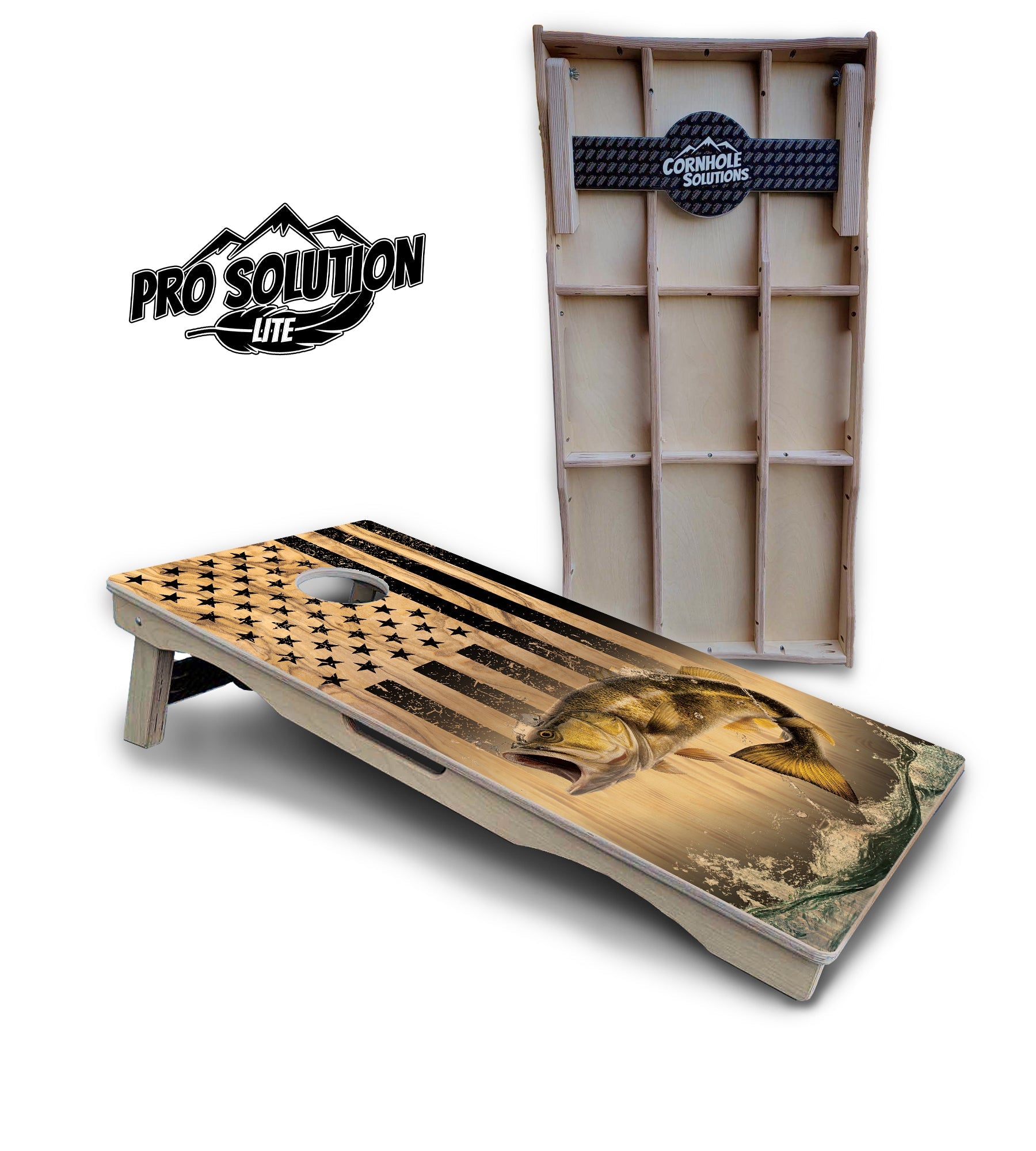 Light Wood Deer & Fish Flag Cornhole Boards - Pro Solution Lite Series