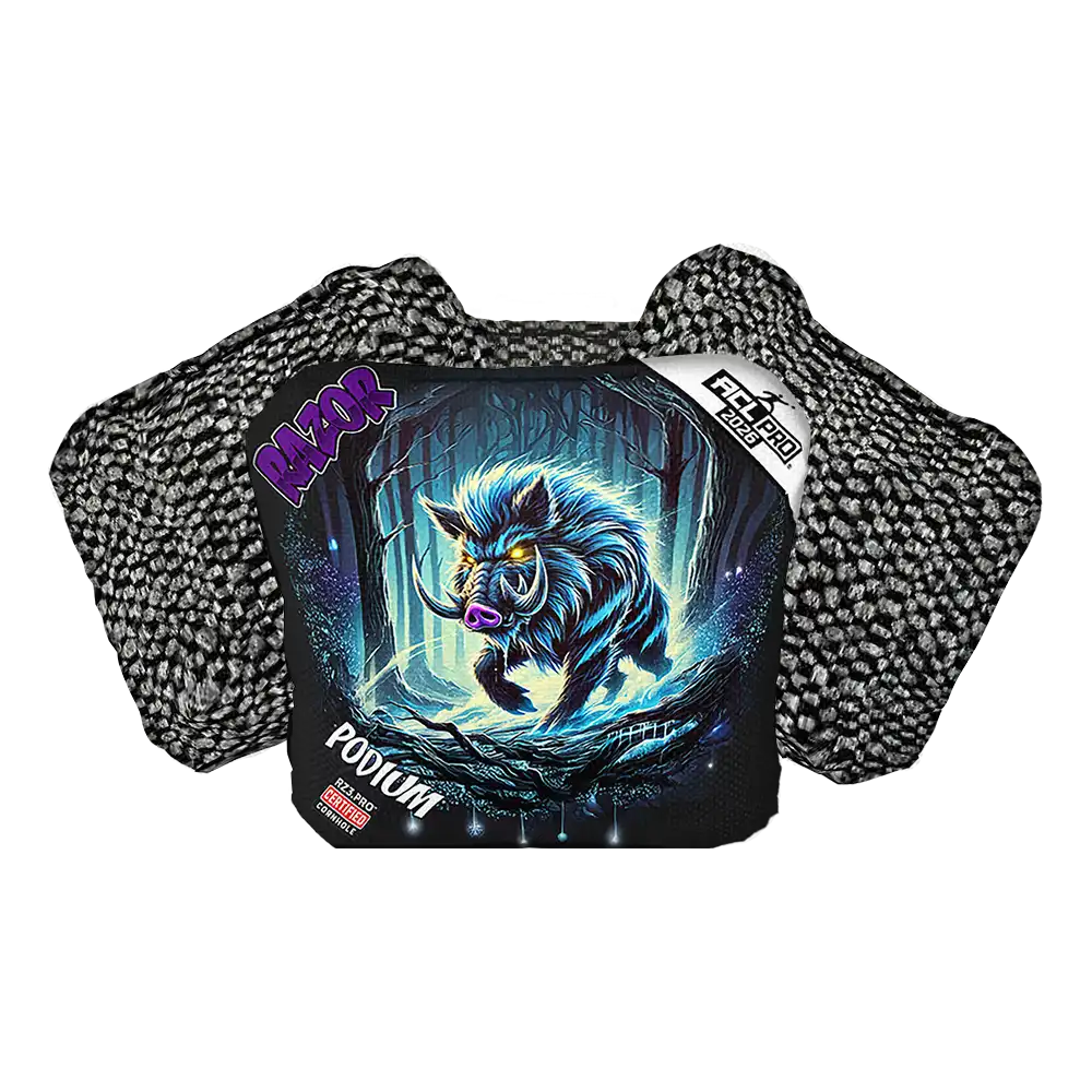 The Razor Podium Pro Series is our go-to bag for pro players. Our pro players say, "If this bag touches the hole, it’s going in!" The Podium combines exceptional hole-friendliness with the perfect mix of speed, grip, and stability. Its hybrid carpet design and unique textured back provide confidence and control in high-stakes games, making it the preferred choice for serious players who value precision.