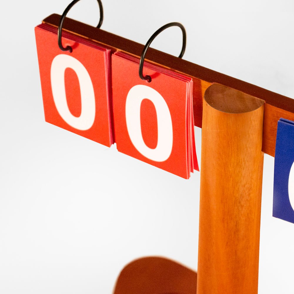 - 18” premium solid wood with mahogany framed scoring tower tracks scores up to 99 points