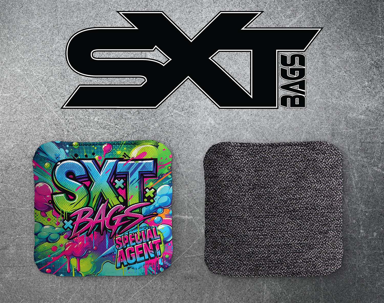 Introducing SXT Bags Special Agent cornhole bags. This bag features a hybrid carpet slow side material offering a controlled speed of 6/10. On the flip side, experience the perfect balance of speed and control with a fast side boasting speeds around 8.5/10. Elevate your cornhole game with these high-performance, versatile bags.