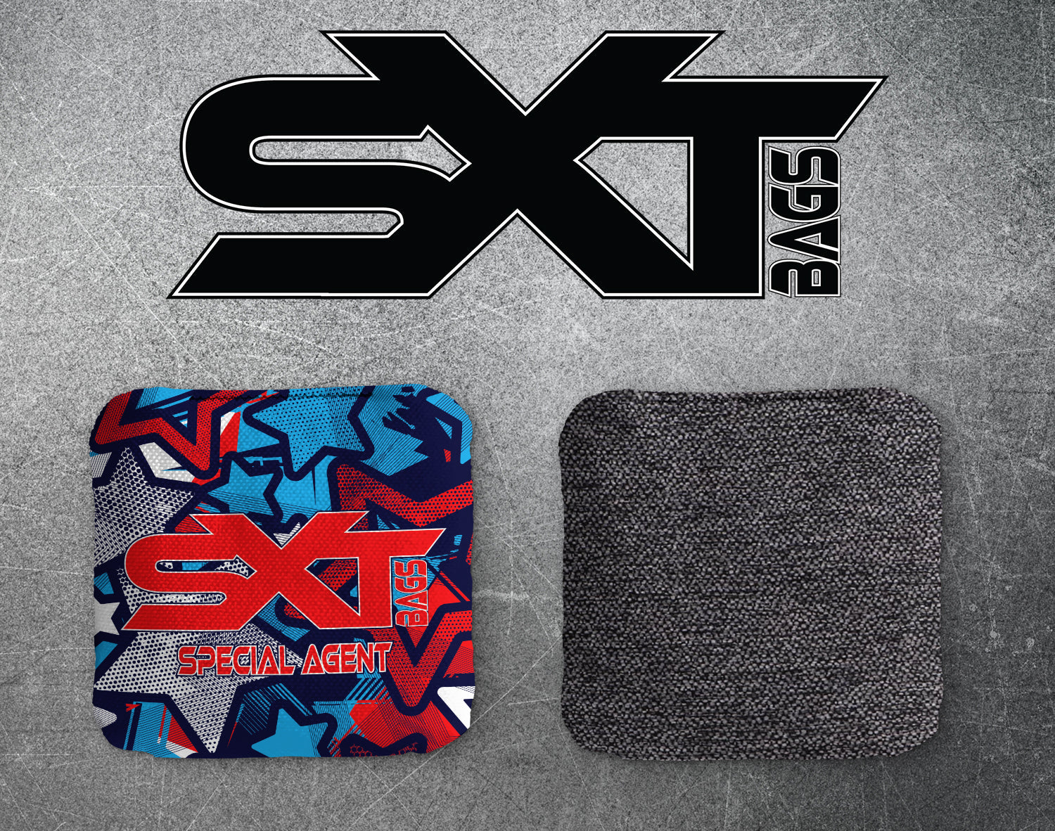 Introducing SXT Bags Special Agent cornhole bags. This bag features a hybrid carpet slow side material offering a controlled speed of 6/10. On the flip side, experience the perfect balance of speed and control with a fast side boasting speeds around 8.5/10. Elevate your cornhole game with these high-performance, versatile bags.