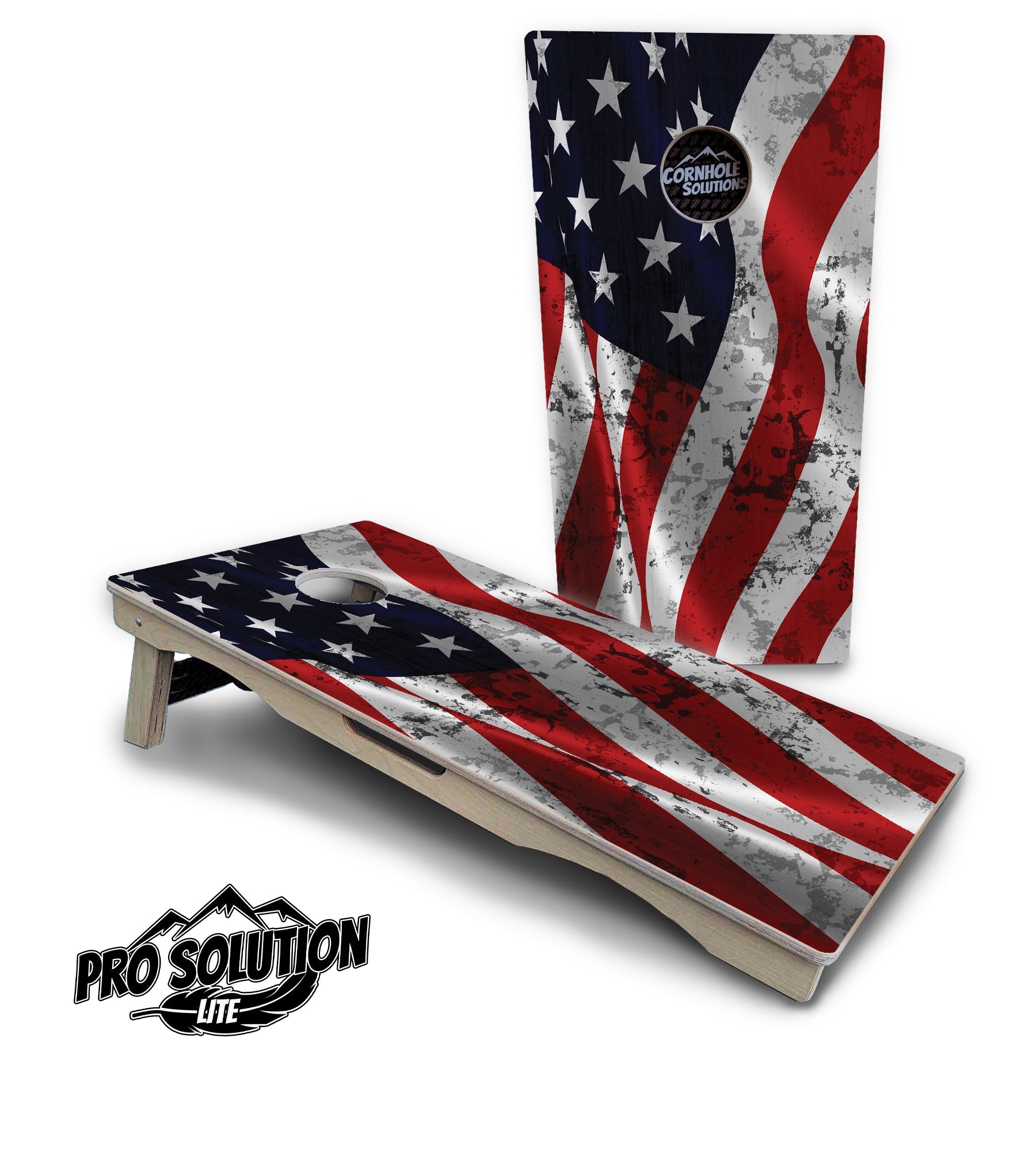 Wavy Distressed Flag Cornhole Boards - Pro Solution Lite Series